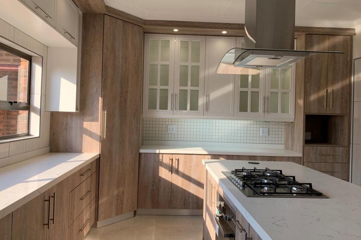 The open-plan living and dining areas are expansive and flooded with natural light. From the lounge, step through double sliding doors onto the enclosed patio / entertainment area, complete with a built-in braai and foldable aluminum windows. This space flows effortlessly into a neatly paved boma area, enclosed with clear-view fencing a perfect spot for hosting family and friends.