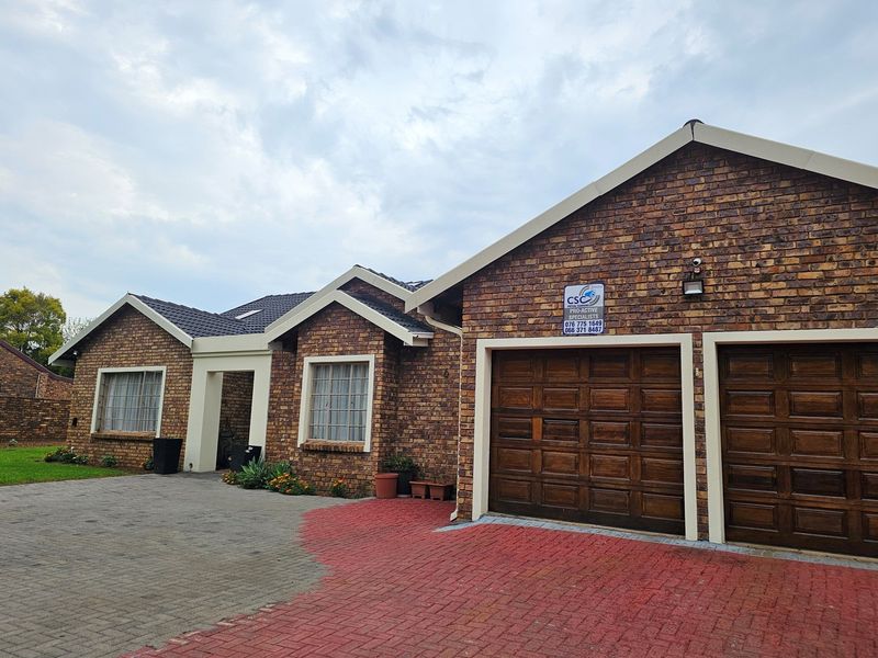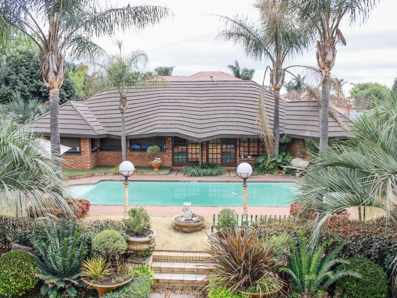 Entertainers’ family oasis in the heart of Aerorand, with a tranquil koi dam entrance, covered patio and built-in braai overlooking a solar-heated pool; four bedrooms and double garage.