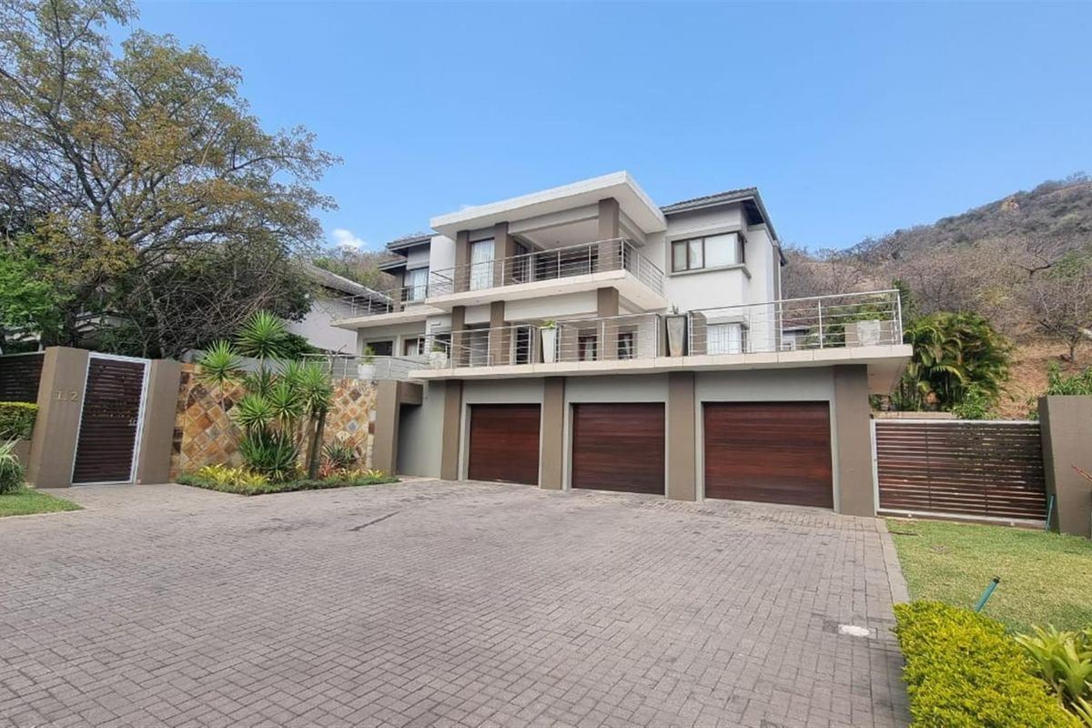 This three- level residence in Matumi Golf Estate offers 5 en-suite bedrooms, multiple living spaces, and panoramic Lowveld views .