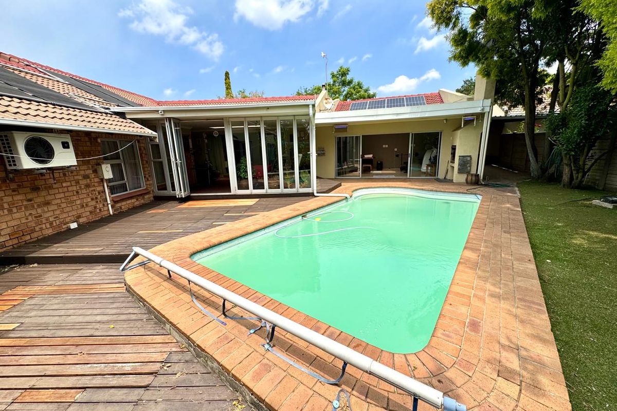Effortless family living and entertaining on an 1084 m² stand in a quiet setting, with indoor entertainment flowing to patio, built-in braai, heated pool, four beds, four baths, 3-car garage.