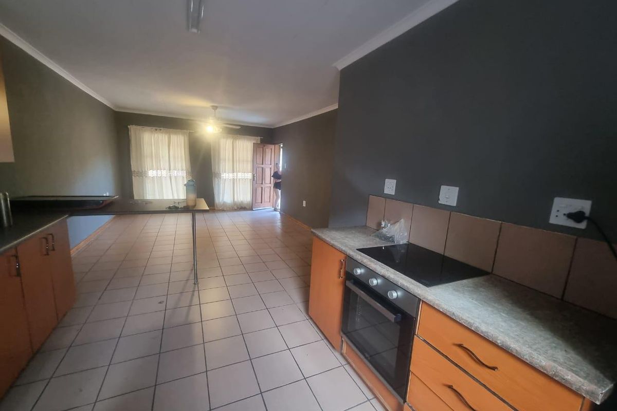 The lounge is spacious with a ceiling fan and open plan with the kitchen.