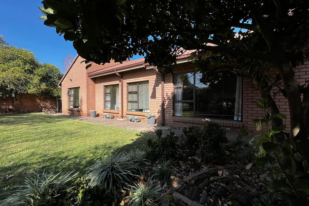 Upon entering this well-kept family home, you enter a large entrance hall that leads to three living areas, two full bathrooms, a kitchen with oak wood cabinets and marble tiles, an entertainment area with a built-in braai that is ideal for the winter, two garages with double carports, and a well-kept garden, this lovely, spacious, one-of-a-kind home is conveniently located near shopping centres and schools.