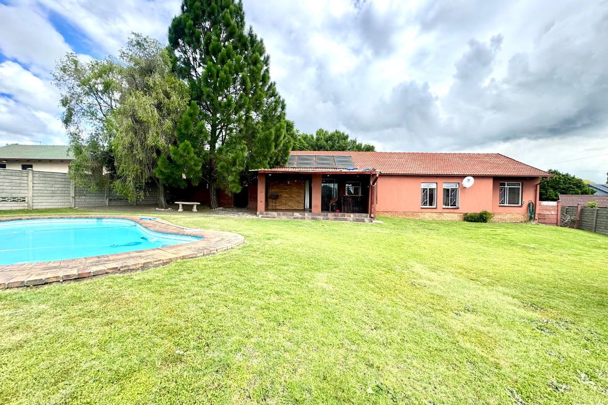Accommodation consists of four well-sized bedrooms, all fitted with built-in cupboards and finished with laminate flooring for a clean and cohesive look. The home offers two bathrooms: one full bathroom that serves the household, and a second bathroom that is the main en-suite, providing privacy and comfort for the main bedroom.