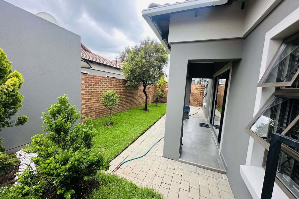 Discover modern comfort and stylish living in this beautifully finished three-bedroom home located in the highly secure and family-friendly Terra Nova complex. This home offers an exceptional blend of luxury, functionality, and convenience — perfect for families, professionals, or anyone looking for a peaceful yet well-connected lifestyle. The home features a newly renovated kitchen with a spacious island, gas stove, and sleek extraction fan, flowing effortlessly into the open-plan living area. Large sliding doors lead out to the private garden, creating an airy indoor-outdoor feel. Enjoy year-round entertaining with a built-in braai area and a well-maintained outdoor space. The master bedroom includes a luxurious en-suite bathroom with contemporary black finishes. Two additional bedrooms offer ample space for children, guests, or a home office.