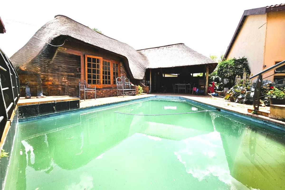 Entertainer's family home in Trichardt with heated pool, paved courtyard and eight single garages ideal for collectors — includes three bedrooms and three bathrooms with flexible thatch-flat accommodation.