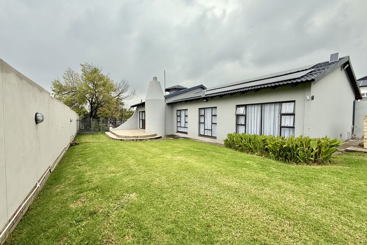 Outside, the home continues to impress with a built-in braai area and three patios, ideal for entertaining or simply enjoying the outdoors. Additional exterior features include two extra rooms, one currently used as a laundry, as well as an outside bathroom. A motorized double garage completes the offering.