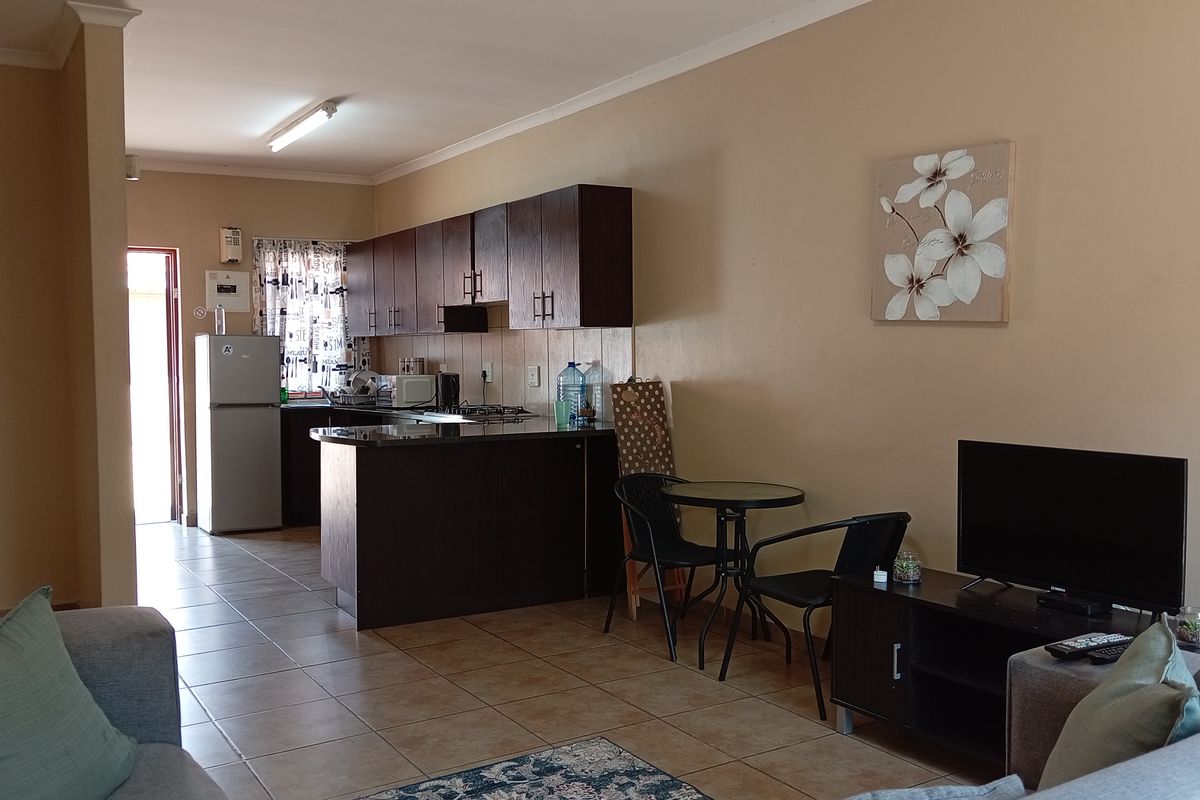 Step inside to an inviting open-plan layout featuring a modern, fully tiled interior and a kitchen fitted with built-in cupboards and a gas stove. Perfect for home cooks who enjoy preparing meals while engaging with family or friends in the adjoining lounge area.