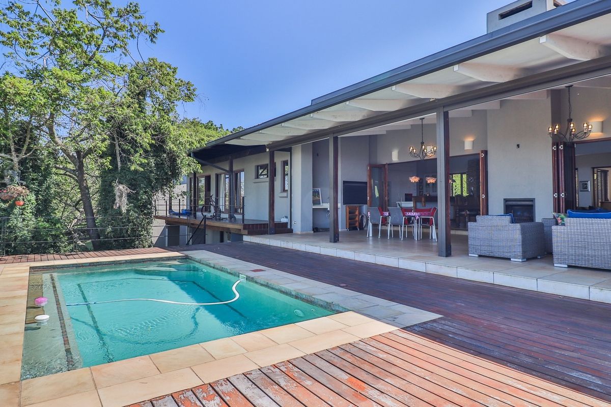 Elevated lowveld living on Pamushana Estate overlooking Kaapschehoop mountains, with indigenous bush, abundant birdlife, pool and woodland viewing deck — five en suite bedrooms and triple garage.