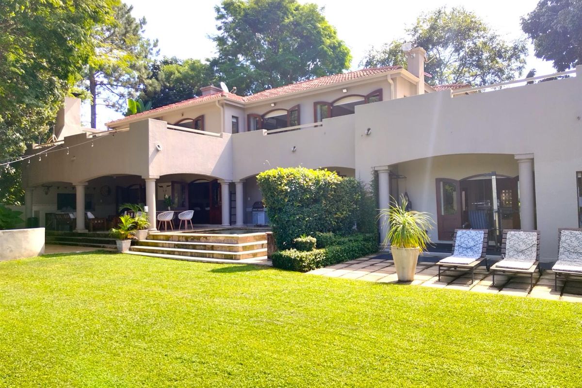 Entertainer's haven in White River Estate offering sweeping Lowveld and Longmere Dam views, expansive garden with splash pool and boma, plus self-contained two‑bed flatlet and double garage.