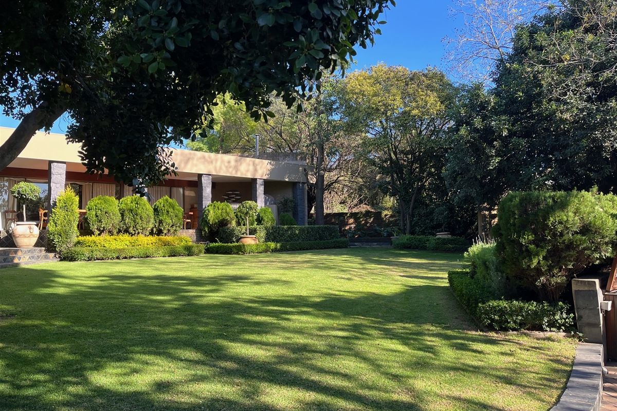 Entertain effortlessly in a private garden with pool and fountain, long patio with built-in braai and pizza oven, chef's wooden kitchen, six bedrooms (four en-suite) and backup generator.