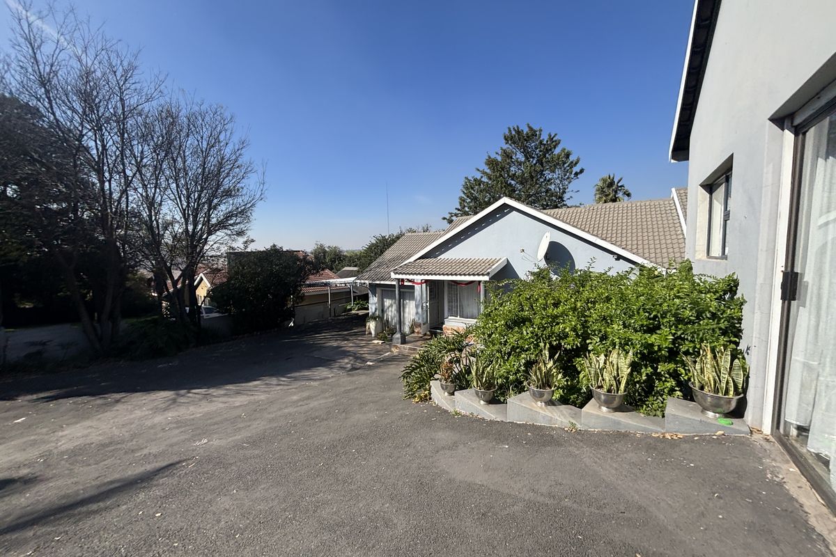 This residence embodies a charming French aesthetic, featuring two distinct living areas. One of these is seamlessly integrated with a spacious kitchen and dining area, creating the perfect space for family and friends to gather and enjoy meals together. The kitchen boasts elegant wooden finishes, equipped with a gas hob and electric oven. The home includes three well-appointed bedrooms and three bathrooms. French doors lead to a delightful patio with a braai, overlooking a beautifully landscaped garden and swimming pool.