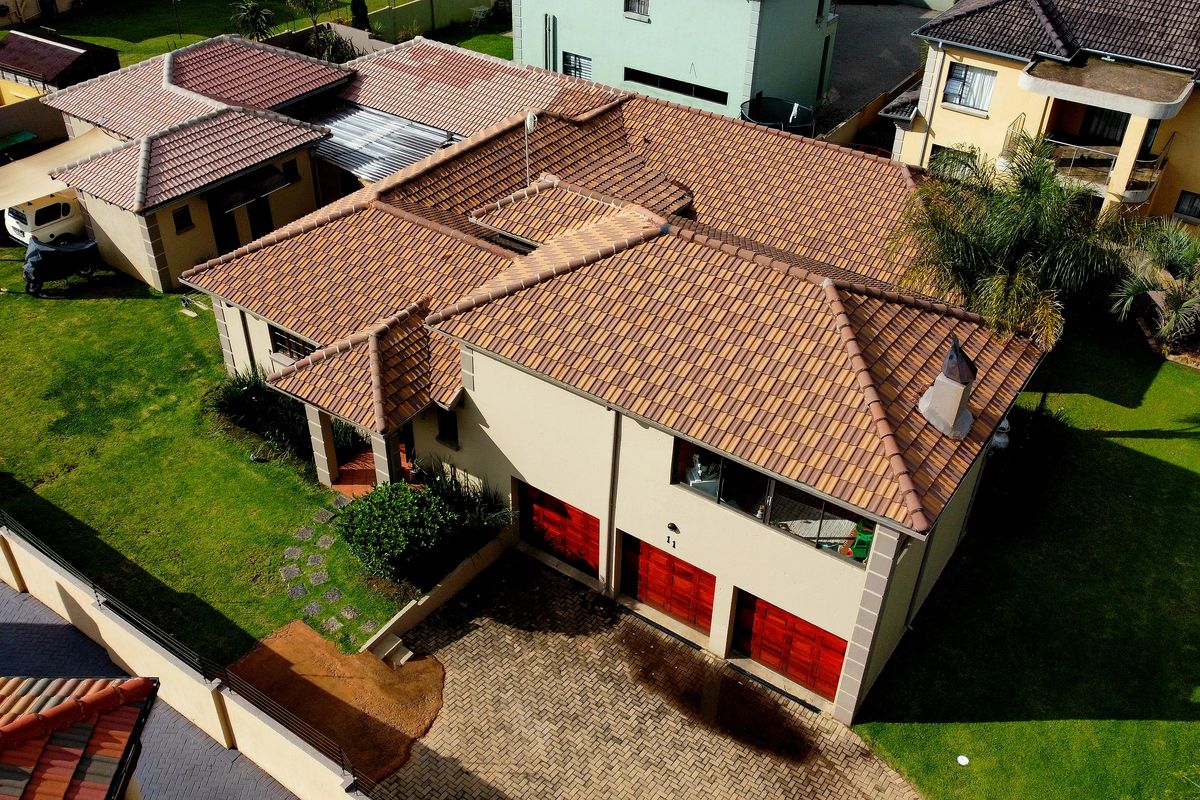 Nestled within a secure complex in the desirable Model Park suburb of Witbank. Spanning an impressive 1259 m2, this residence features an open-plan living area perfect for relaxation and entertaining, complemented by a modern kitchen with granite countertops, a breakfast nook, and ample storage. With five spacious bedrooms, each boasting built-in cupboards and five en-suite bathrooms, plus a guest toilet, this home is designed for family living. Enjoy the upper-level family room that opens to an indoor braai area with stunning views, a recreation room with its own kitchen leading to a patio, and a beautifully manicured garden with a sparkling pool. Additional highlights include three automated garages, a carport, a store room, prepaid electricity, and a 5000lt JoJo tank with a pressure pump, all while benefiting from low monthly levies. Don't miss the opportunity to make this exquisite property your family's new sanctuary!