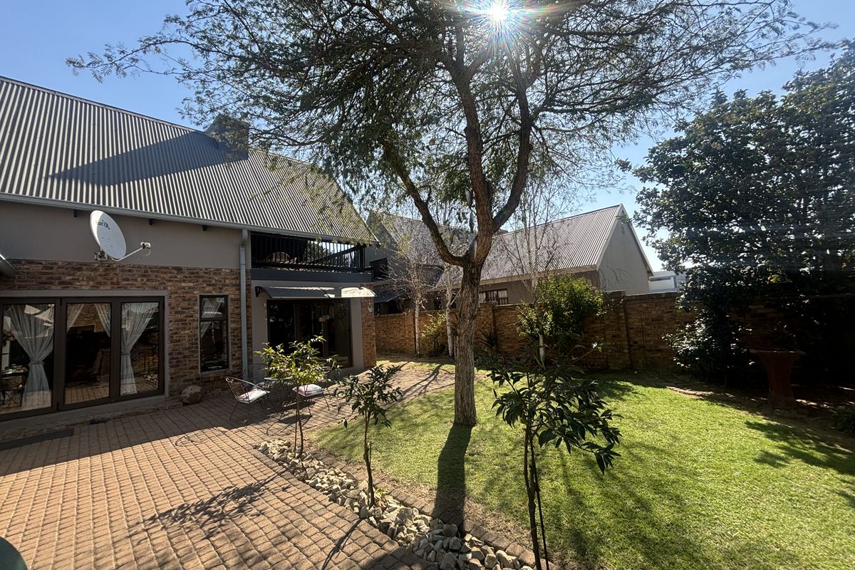 Relax in secure estate living with warm open-plan spaces and a cozy fireplace; enclosed patio flows to a private garden. Three bedrooms, two bathrooms, double garage.