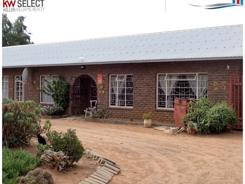 Income-generating family compound in a sought-after neighbourhood, with communal braai, borehole and sprinkler system. Features five-bedroom main house, two flats and two double garages.