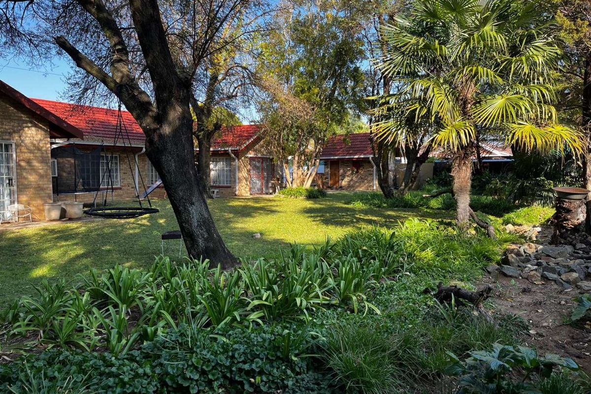 Entertain effortlessly in a private suburban setting on 1,428 m² — pool, lapa with braai, dining lounge with built-in braai, study, four bedrooms, two baths and three garages.