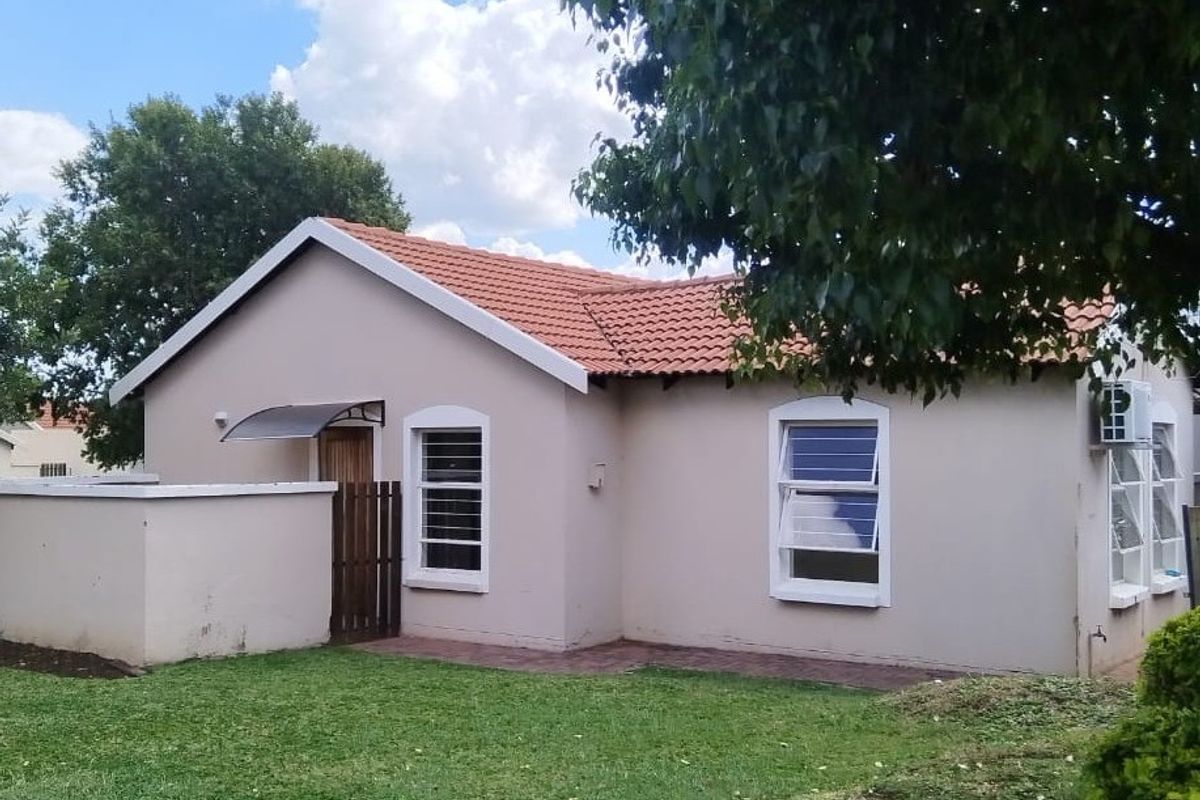 Relaxed family living near Brits Mall and reputable schools in a secure complex — private garden with built-in braai for entertaining, open-plan kitchen, three bedrooms, two baths, single garage.