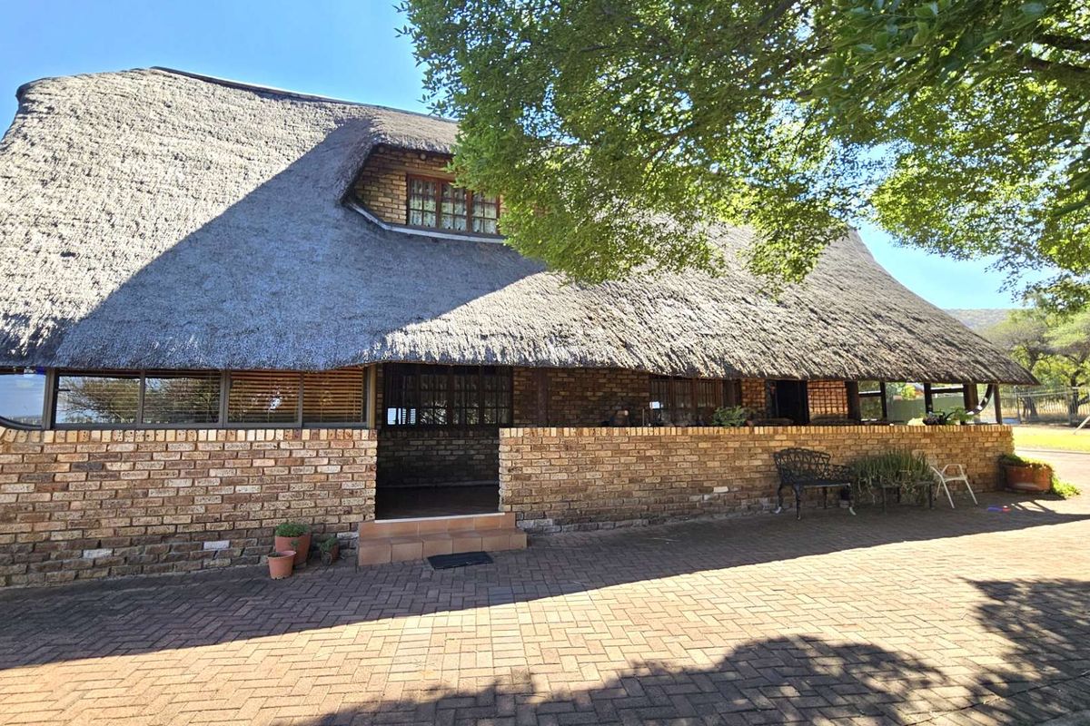 Enjoy peaceful rural living near Brits with sweeping valley views, a thatched lapa and balcony for entertaining, plus a double-storey farmhouse — three bedrooms, three bathrooms and four garages.