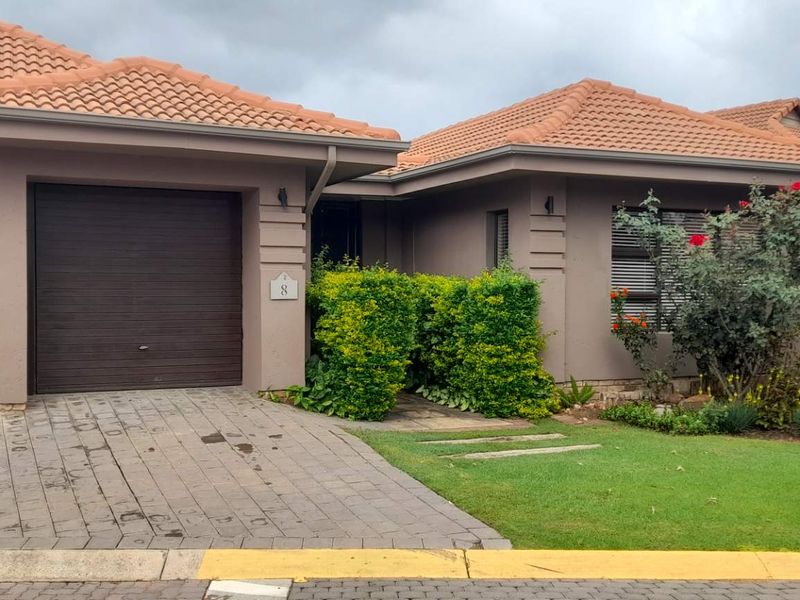 Low-maintenance lock-up-and-go living in Kosmos Village Estate, with Magaliesberg mountain and lake views, modern kitchen, dedicated braai and guest cottage ensuite; two bedrooms, two bathrooms, double garage.