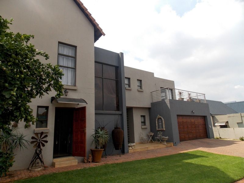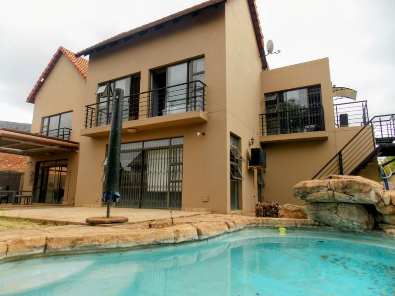 Effortless family living in sought-after Melodie, Hartbeespoort complex — flowing open-plan interiors opening to a covered patio with built-in braai. Four bedrooms, 3½ baths and double garage.