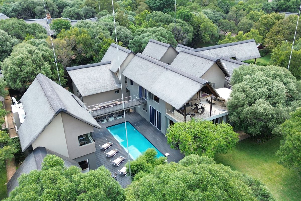 While the home's signature thatch roof beautifully complements the African skyline and estate's natural surroundings, the interior is a revelation of modern sophistication with no exposed thatch within the living spaces apart from the Magnificent entrance, allowing clean lines, high-end bulkheads, and luxurious contemporary finishes to define every room.
