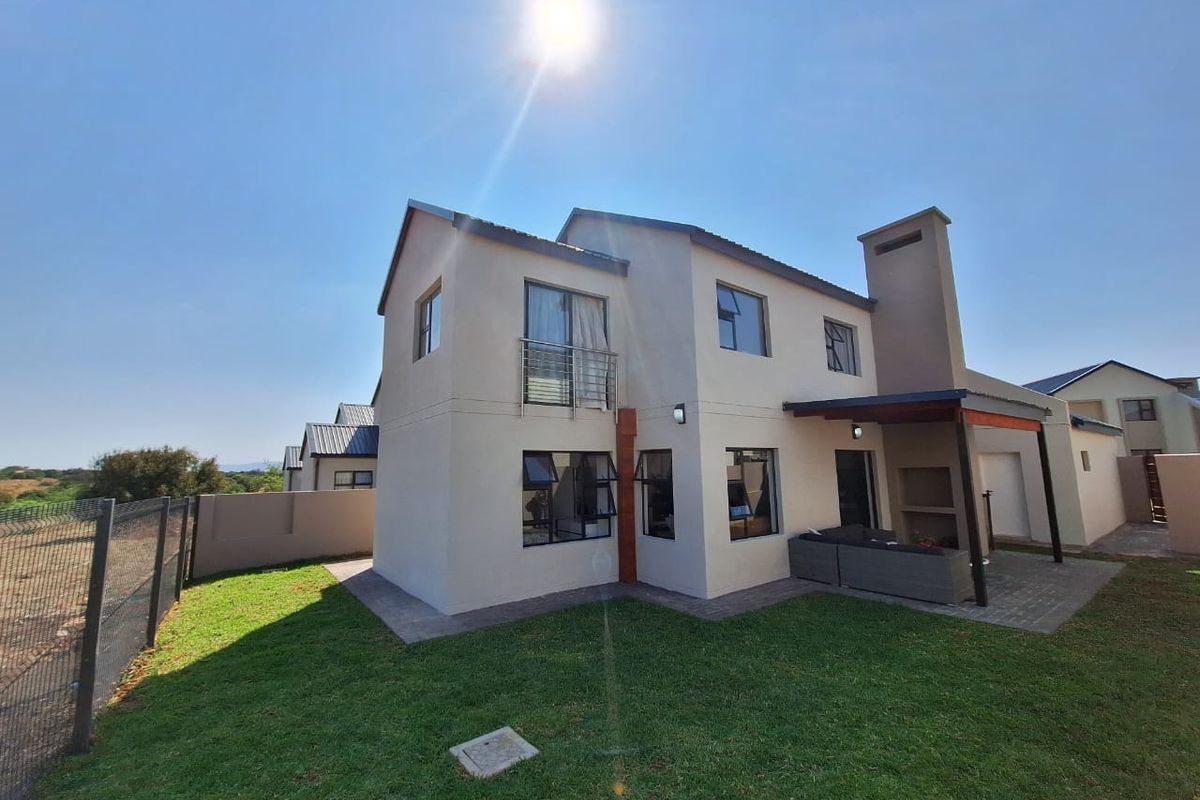 Entertainer's modern home in a peaceful, family-friendly neighbourhood with seamless indoor-outdoor flow to a covered braai patio and spacious landscaped garden. Four bedrooms, four bathrooms, single garage.