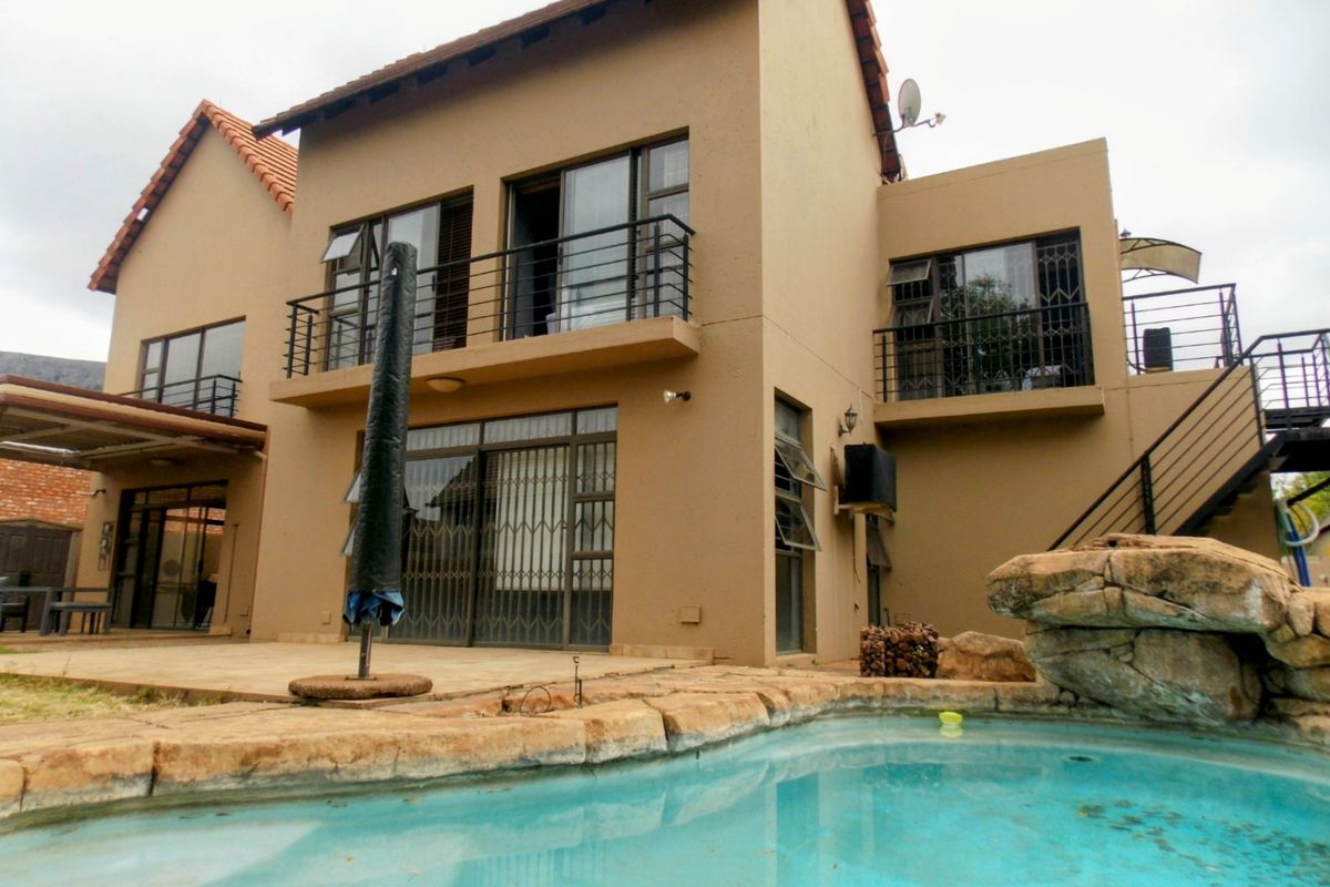 Relaxed estate living in Leloko Lifestyle Estate with private pool and warm boma for guests, sleek open-plan kitchen and fireplace; four bedrooms, three baths and double garage.