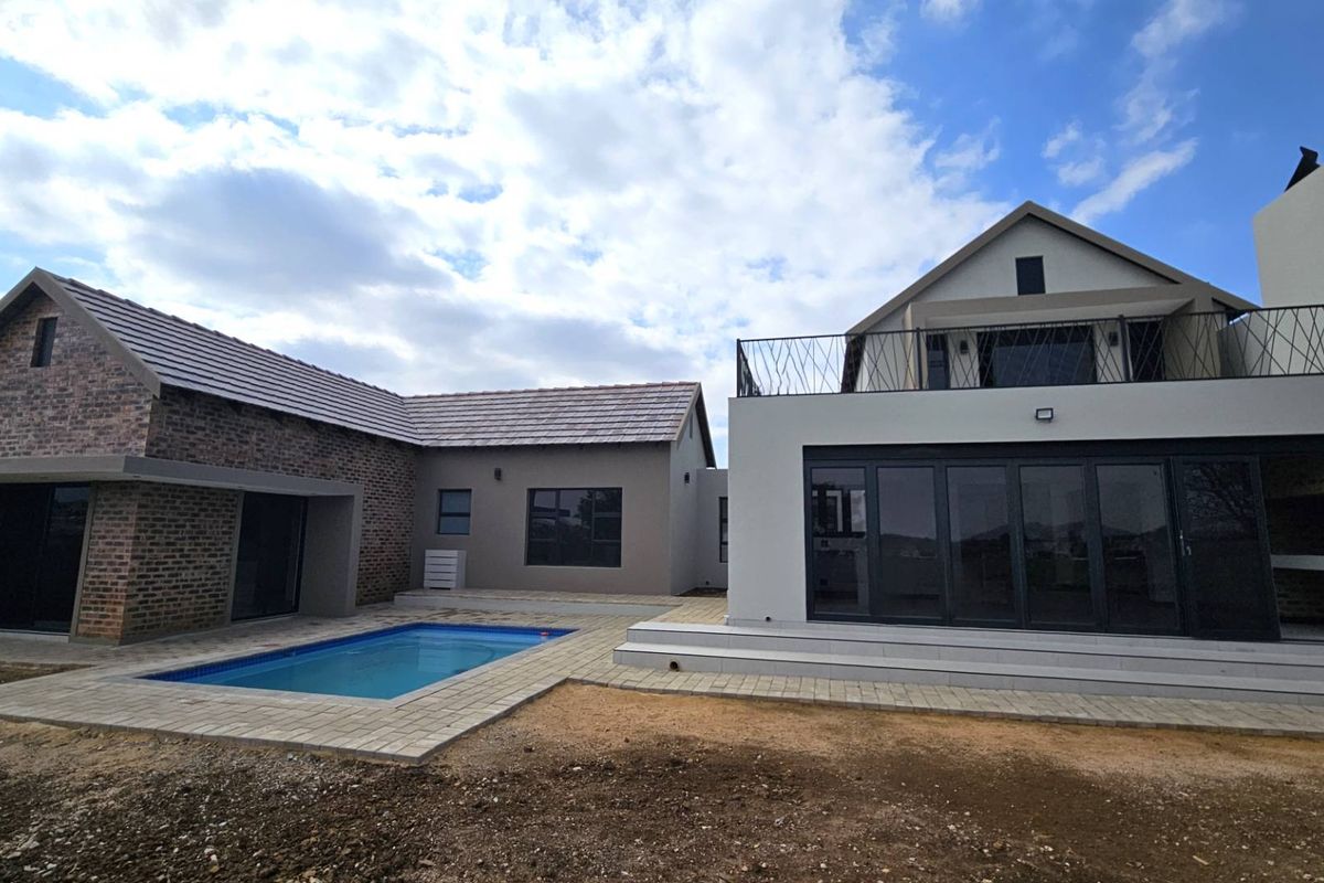 Farm-style equestrian living with mountain views in Landsmeer Equestrian Estate Meerhof — entertain by the pool and indoor braai with a state-of-the-art kitchen; four bedrooms, 4.5 baths, triple garage.