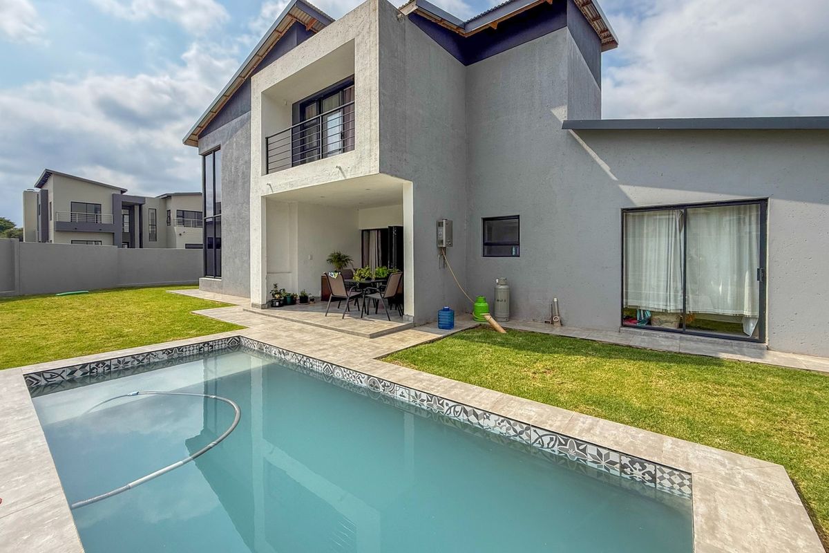 This ultra-modern residence enjoys a prime position within Pinnacle View Estate, overlooking the estate’s central circle - a beautifully maintained communal space where children can play safely and neighbours connect. The architectural design makes a confident statement, combining Chromadeck monopitched and concrete roofing with expansive glass elements to create a sleek, contemporary façade defined by clean lines and natural light.