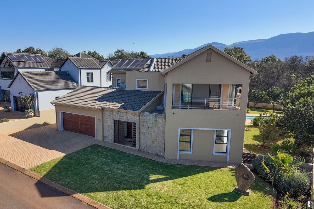 Exclusive Mandate - This immaculate modern home offers luxury living in a peaceful setting with breathtaking Magaliesberg mountain views. Recently freshly painted and fitted with brand-new blinds in the downstairs living areas, this home is ideal for families who love comfort, style, and space. The heart of the home is the open-plan kitchen and living area, which leads seamlessly to a covered patio with a built-in braai, perfect for entertaining. Downstairs also features a guest toilet, study, and a spacious bedroom with an en-suite bathroom – ideal for guests or multi-generational living. Upstairs offers a relaxing pyjama lounge and three additional spacious bedrooms – all with modern en-suite bathrooms. The kitchen is equipped with a gas hob, built-in fridge, and built-in coffee machine, while the cozy fireplace adds character to the lounge. The full solar and inverter system ensures energy efficiency and uninterrupted living, and the extra-large garages comfortably accommodate at least three vehicles with added storage space. Step outside to enjoy a swimming pool and a large, pet-friendly garden that backs onto a greenbelt—offering privacy and unbeatable views.