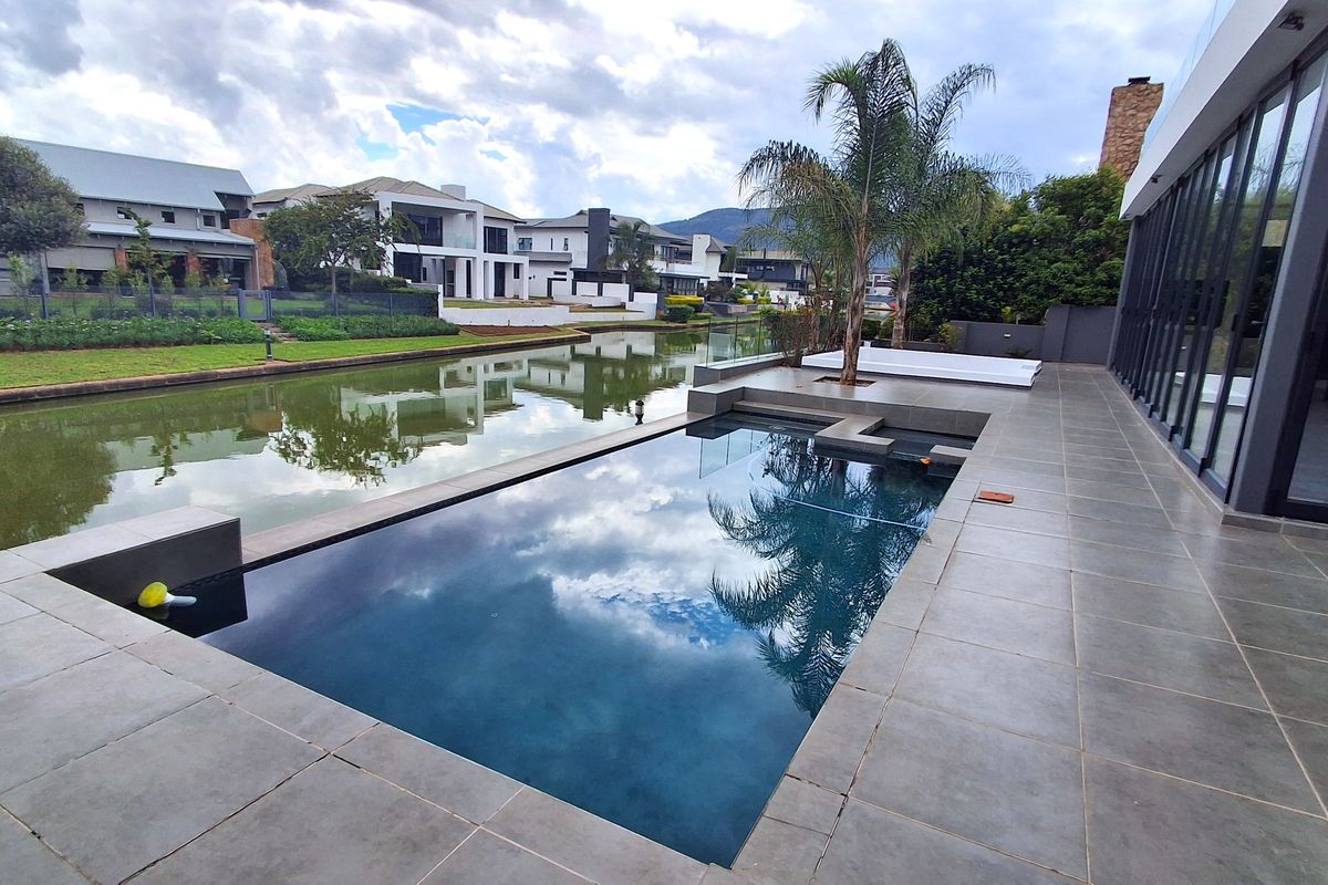 Marina-inspired living on The Islands Estate, Hartbeespoort, with Magaliesberg views, canal frontage, pool, landscaped garden and modern gourmet kitchen, six bedrooms, seven bathrooms and double garage.