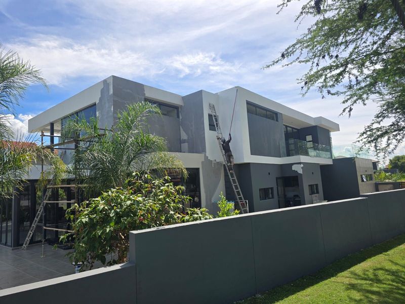 Live resort-style in Caribbean Beach Estate with golf-course and dam views, private pool, jacuzzi room and manicured garden; Italian-inspired marble interiors and five en-suite bedrooms with three garages.