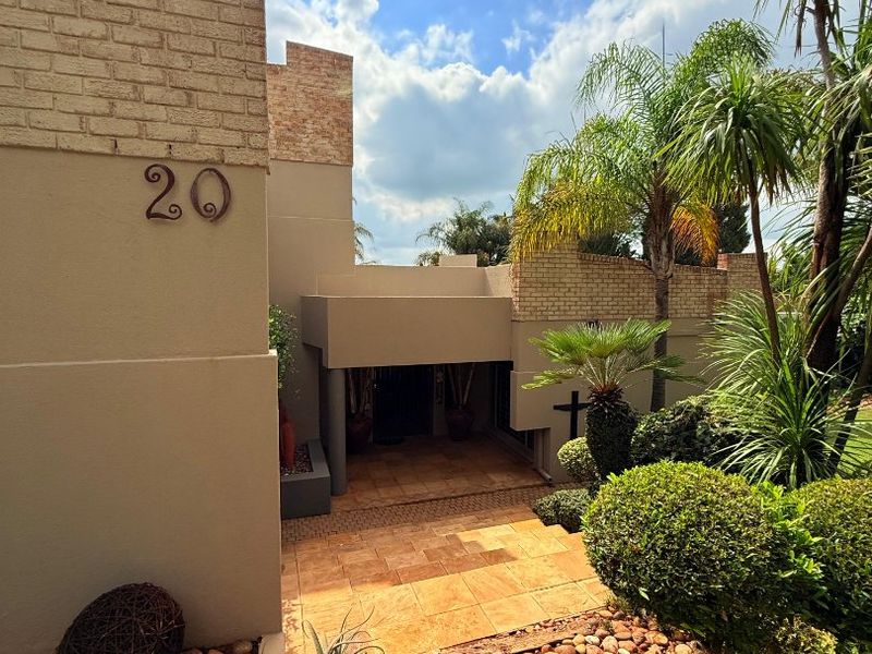 Entertainer's lifestyle in sought-after Doringkruin complex with generous open-plan living, bar-equipped entertainment area opening to garden and patio, private balconies; five bedrooms, 2.5 baths, double garage.