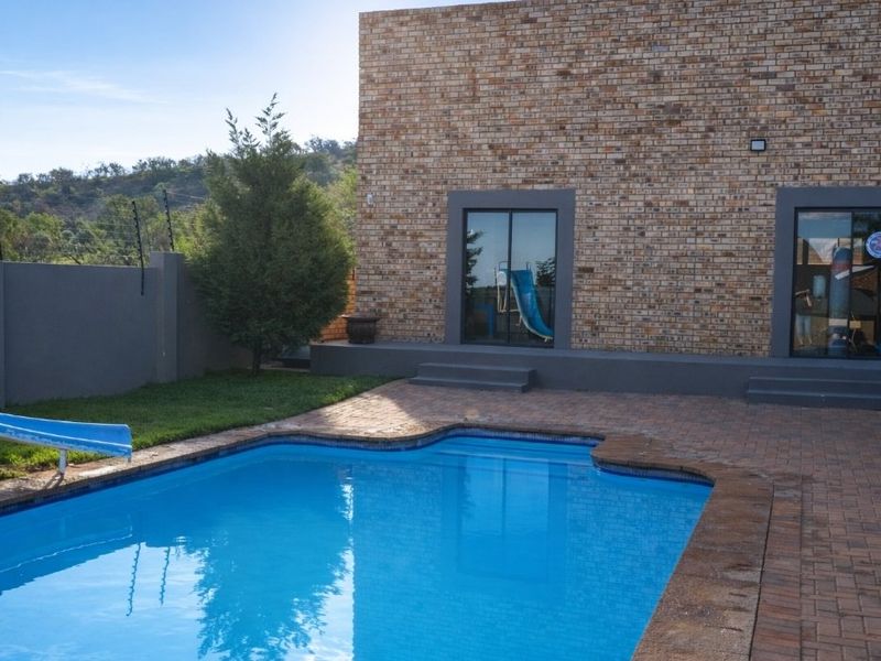 Entertainer’s home in Doringkruin, Klerksdorp — relaxed pool and bar/braai living, self‑sufficient solar/borehole backup, plus a flatlet for guests. Three bedrooms, two baths.
