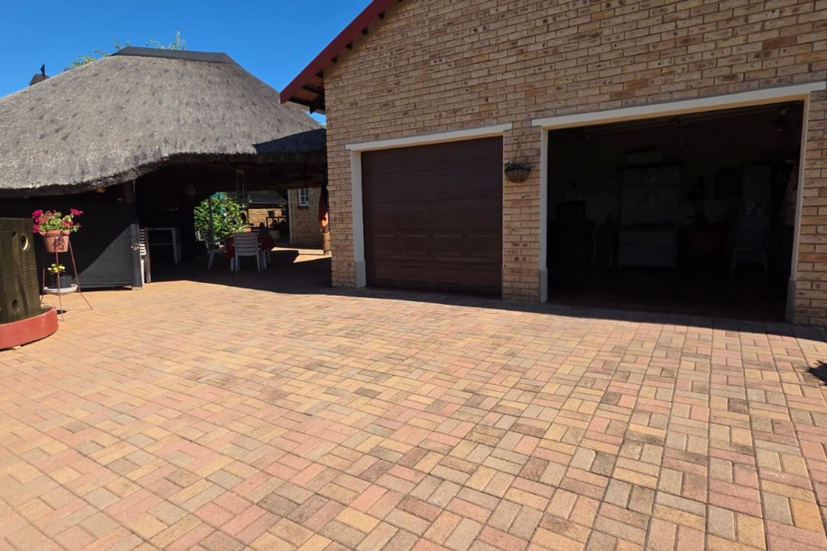 Relaxed suburban living in Doringkruin, Klerksdorp with spacious indoor-outdoor flow, expansive garden and lapa with built-in braai — three bedrooms, two bathrooms.