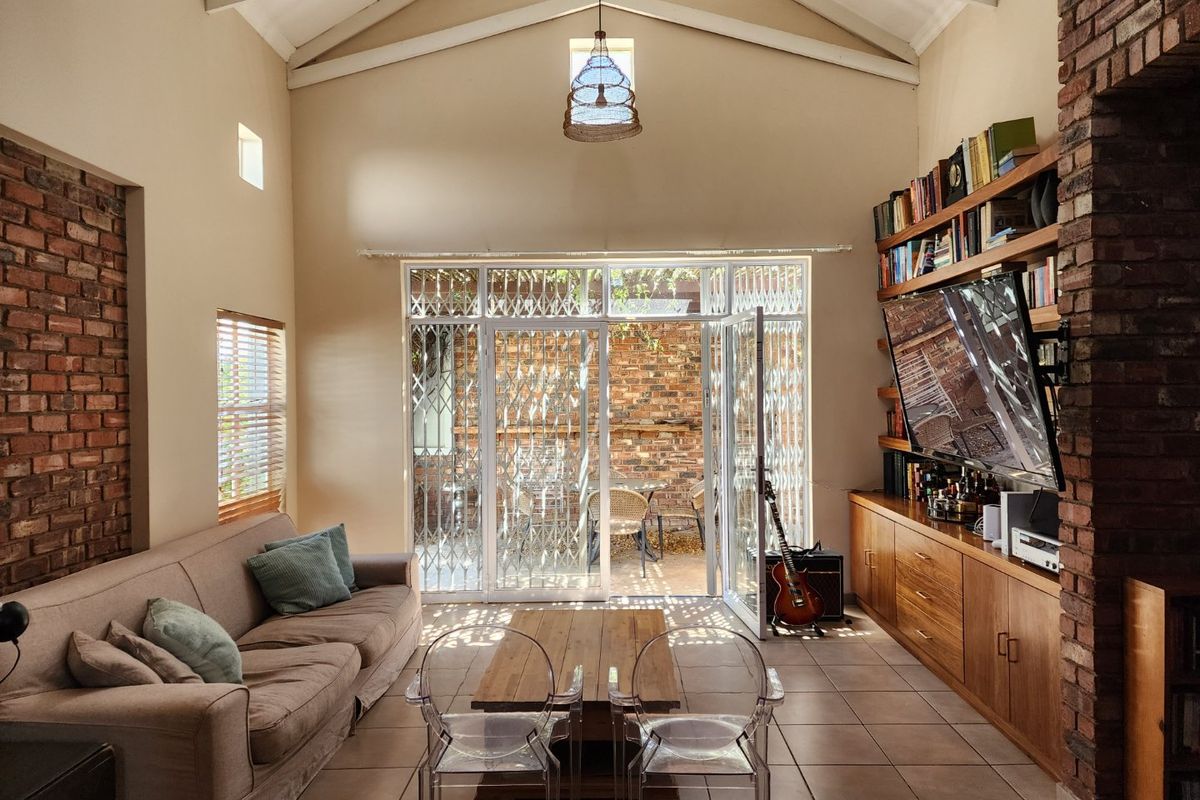 Relaxed family living in a secure, school-friendly complex with a covered patio and built-in braai overlooking a private garden; open-plan living, three bedrooms, two bathrooms, double garage.
