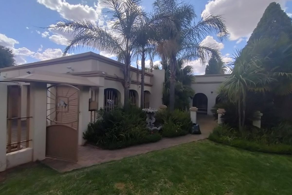 Discover the epitome of comfort and entertainment in this exquisite 4-bedroom, 2-bathroom home. The spacious kitchen boasts ample built-in cupboards, a pantry, scullery, and laundry area. Entertain guests in style with a generous open-plan bar and entertainment room, complete with a pool table area. A separate lounge and dining room offer more intimate gatherings, while a dedicated study provides a quiet workspace. Step outside to a verandah with roller blinds and a built-in braai, overlooking a sparkling swimming pool, vegetable garden, and a charming arbour under shade netting. Added conveniences include 5 garages, an electric gate, CCTV security, and a borehole.