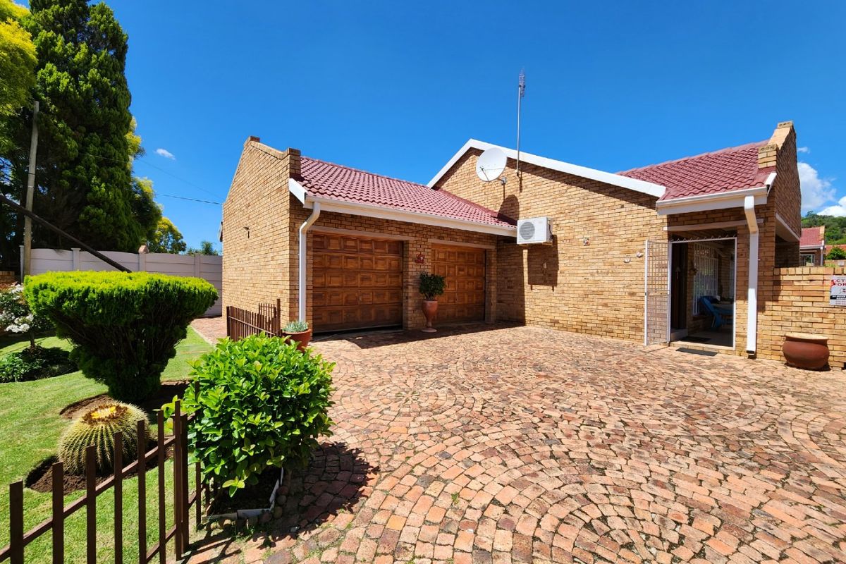 Spacious full-title townhouse in central, secure Oudorp, Klerksdorp — oversized open-plan living, low-upkeep face-brick, neat garden, air-conditioned reception and double electric garage. 3 beds, 2 baths.