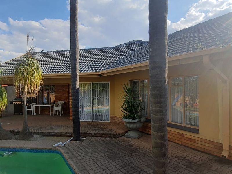Family-focused living in established Roosheuwel, Klerksdorp — open-plan areas with built-in bar and large yard for outdoor entertaining. Four bedrooms, two bathrooms, double garage and carport.