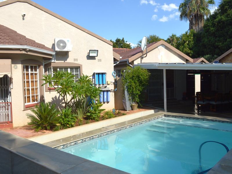 Relaxed entertainer's retreat in Wilkoppies, Klerksdorp โ leafy garden, newly resurfaced swimming pool and cozy fireplace; four bedrooms, three baths and spacious double garage with caravan parking.