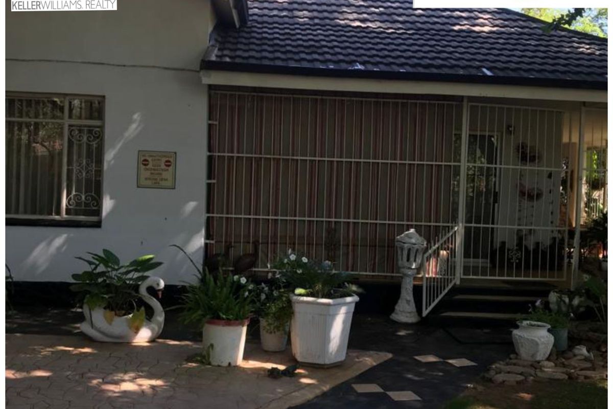 This property has 4 bedrooms, 3 bathrooms, kitchen, pantry, sitting room, dining room, T.V room, study, laundry room, patio, lapa, braai area, gas geyser, electric geyser, 6 solar security lights, alarm system, garden, outside toilet, 8 carports, walls with security fence, 1 big room with own bathroom, 1 bedroom flat, storeroom, vegetable garden, borehole, 3 jojo tanks, chicken run, cupboards in all of the rooms and a built in generator