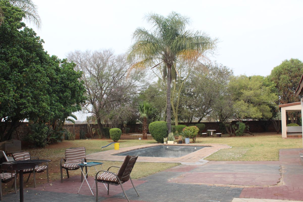 Family oasis in Mooinooi near the golf club and mall, featuring a shaded fruit garden, sparkling pool, separate flatlet and private main-bedroom patio — 4 beds, 6 covered bays.
