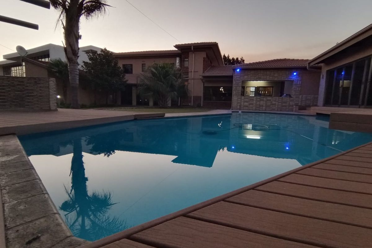 The home features three versatile living areas. The private second lounge is ideal for teenagers or a quiet retreat, while the expansive third living space opens directly onto the sparkling pool, boma, and entertainment area – perfect for summer gatherings. A light-filled entertainment room, fitted with stacking doors, connects effortlessly to the stoep, pool, and garden, creating the ultimate indoor-outdoor lifestyle.