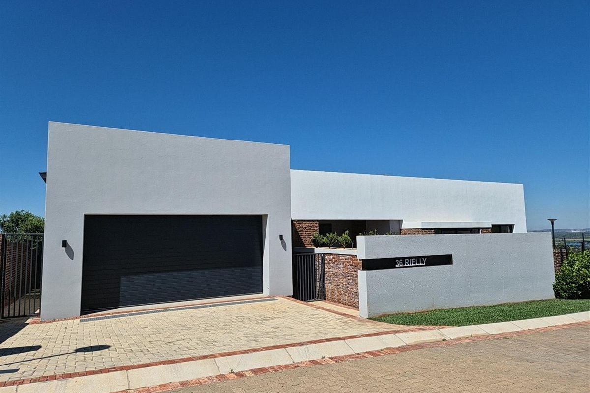 Relax in eco-estate living at Helderzicht, Potchefstroom — leafy walking paths and dam views. Open-plan home with covered patio, built-in braai, pool, solar backup; three en-suite bedrooms, double garage.
