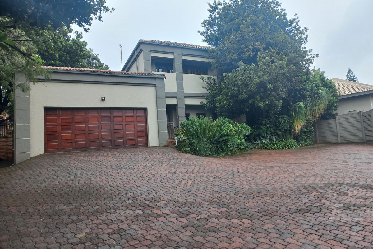 Entertainer's retreat in Safari Gardens with an expansive poolside entertainment area and sprawling yard; modern kitchen and scullery. Five bedrooms, three bathrooms, ten covered parking spaces.