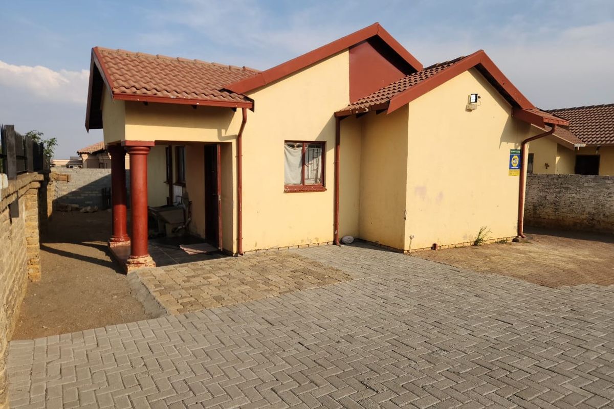 Live and work in Tlhabane West near shops and schools, with business rights, a paved yard, three bedrooms, one bathroom and four covered parking.
