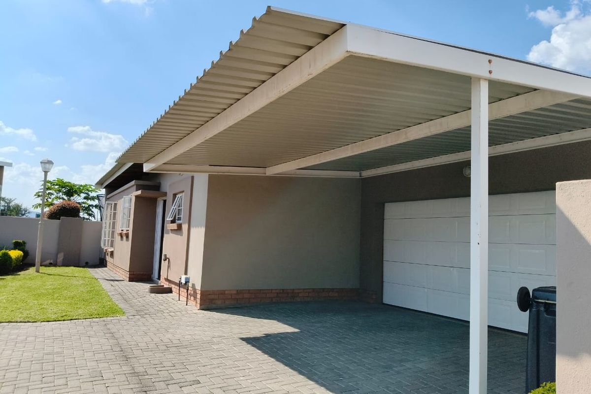 Comfortable family living near shopping, schools and the N4 — pet-friendly community with open-plan living, sleek granite kitchen and patio with built-in braai. Three beds, two baths, double garage.