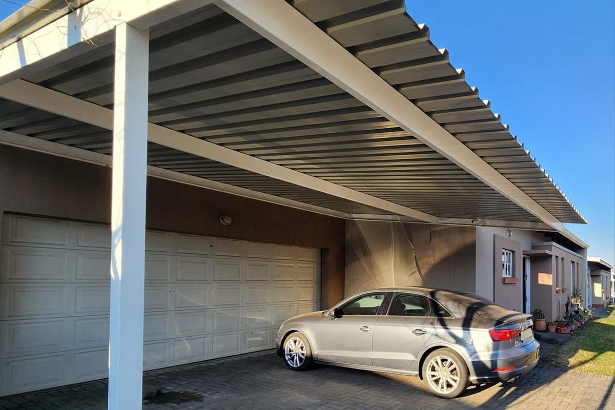 Indoor-outdoor entertaining in Nyala Rock, Waterval East, with a sunny patio perfect for summer gatherings (can be enclosed), secure walled estate, three bedrooms, two bathrooms, double covered parking.