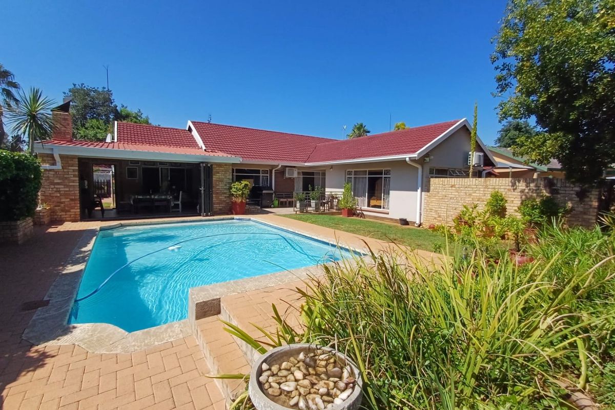 Outdoor entertainment is effortless with a lapa and built-in braai area, a swimming pool, and a beautifully maintained yard. The property also includes a domestic room with a bathroom, a separate laundry room, and a 750ml JoJo water tank. Parking is no issue, with a shaded carport accommodating up to five vehicles and an electric gate for added security.