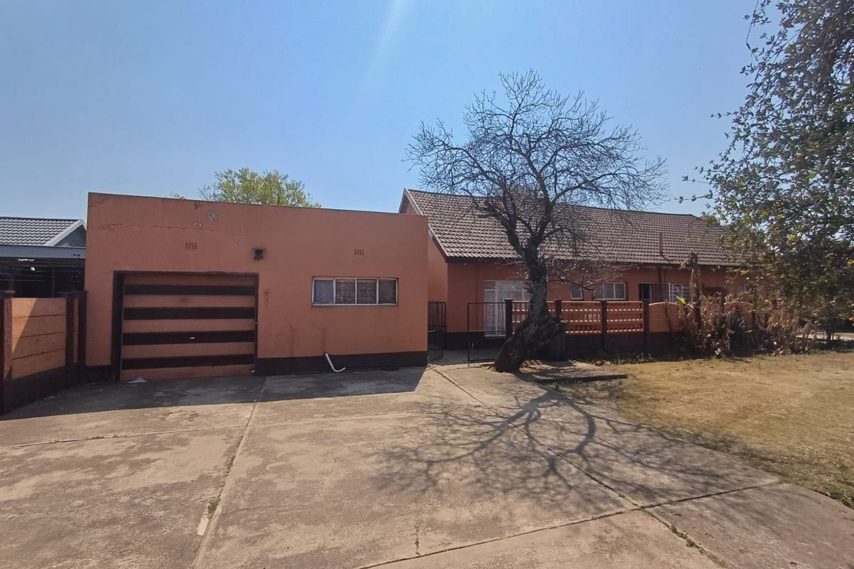 Family-ready Stilfontein home on 1,388 m², featuring a spacious porch, built-in-cupboard bedrooms and two outside rooms with toilet for rental potential — 3 beds, 2 baths, garage.