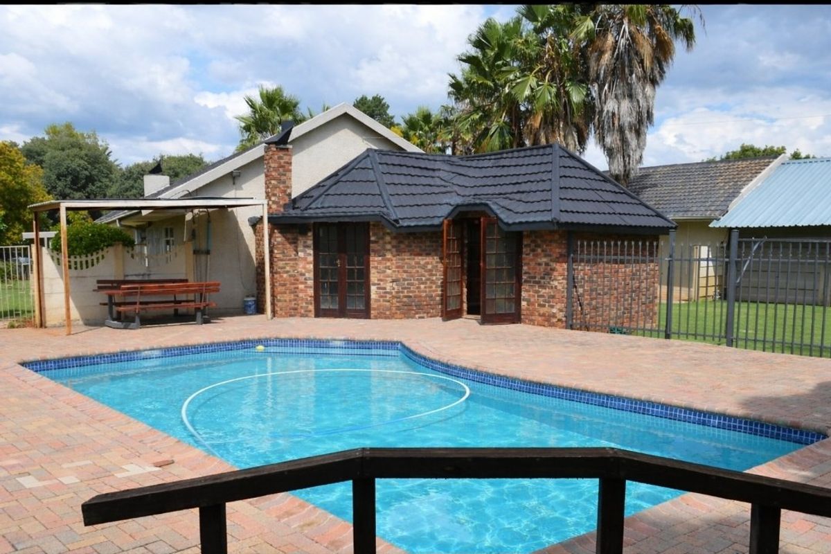 Family-friendly living in Stilfontein Ext 4 with lush garden and poolside lapa, versatile flatlet/home office, expansive parking and double garage, four bedrooms, three bathrooms.